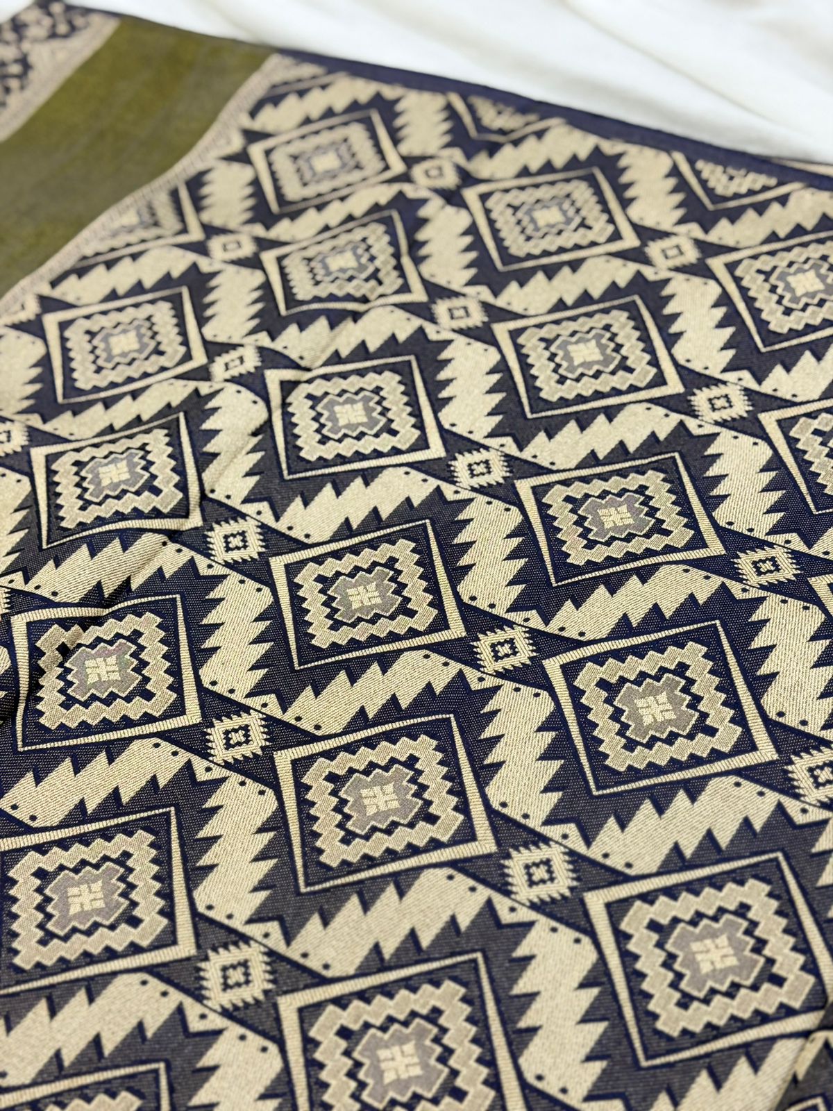 The semi-mashru silk fabric offers a luxurious texture with a smooth, glossy finish, ensuring a graceful fall and effortless comfort. The geometric zari patterns enhance its rich look, while the understated shine of the silk makes it an ideal choice for modern women who love heritage-inspired elegance.