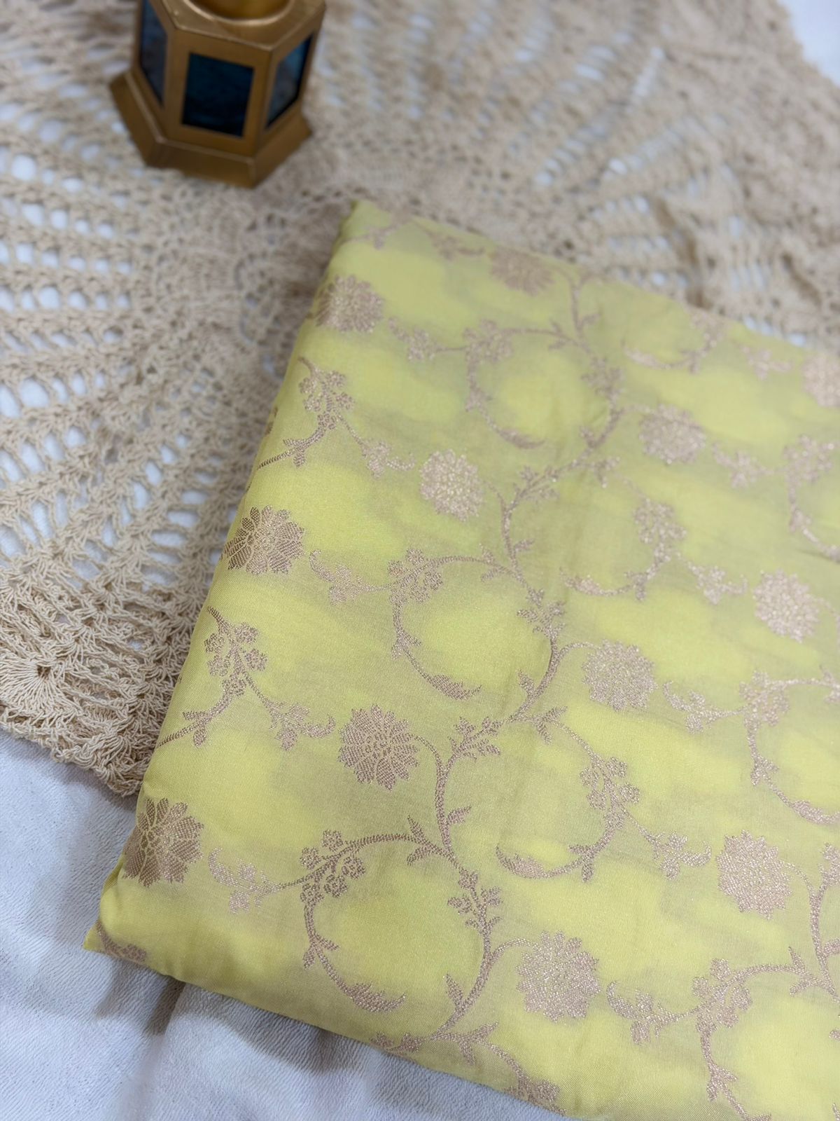 Add a touch of regal charm to your wardrobe with this Black Semi Banarasi Saree, beautifully adorned with an intricate jaal pattern that reflects the rich artistry of Banaras. The delicate floral motifs woven in fine zari create a luxurious, all-over design that exudes timeless sophistication.