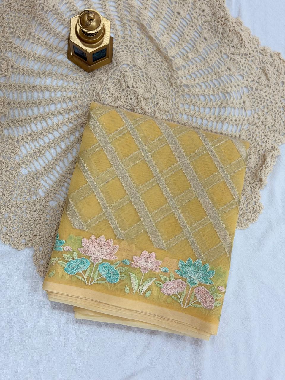 Add a touch of soft luxury to your wardrobe with this Yellow Semi Organza Saree, crafted in a lightweight, sheer fabric that drapes beautifully with a natural flow. The warm pastel yellow shade gives a fresh, graceful look—perfect for both daytime and festive occasions.